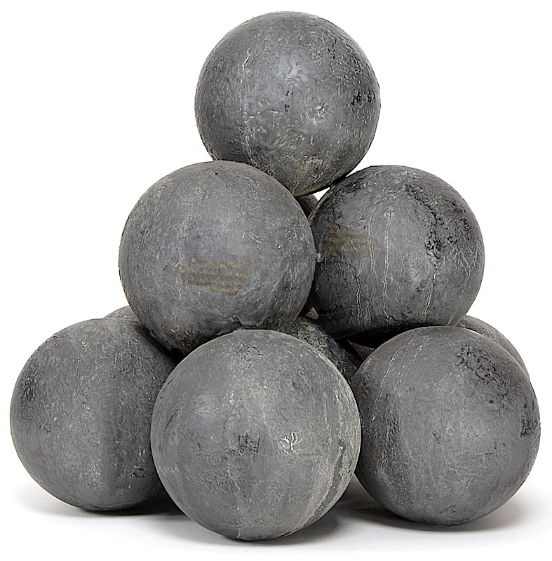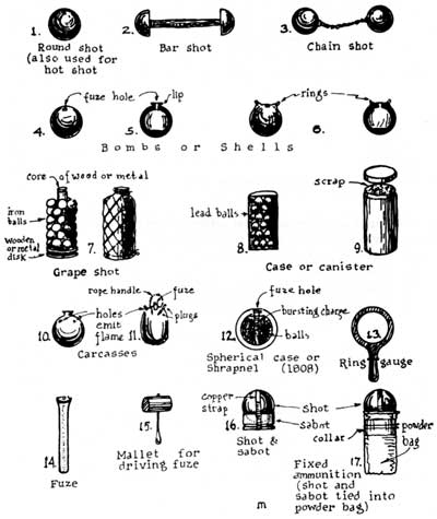 The guns used were all muzzle-loading and varied in size, the size being gauged not by the gun itself, but by the weight of the solid iron ball which was the basic ammunition.