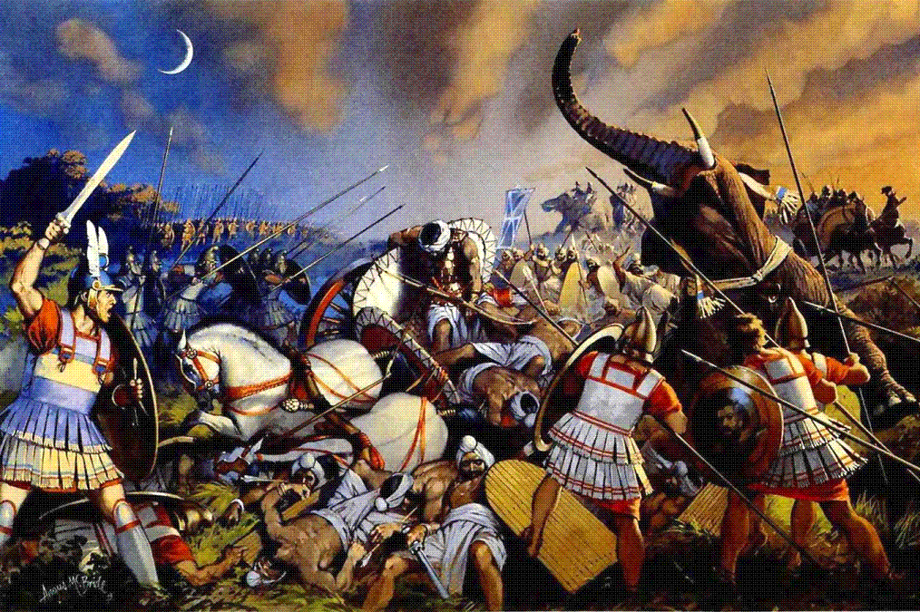 We think, for example, of Alexander at the Hydaspes River in 326BC, defended by King “Poros” (actually Porushattama—Greeks were determined to tame everything—including other cultures’ proper names).