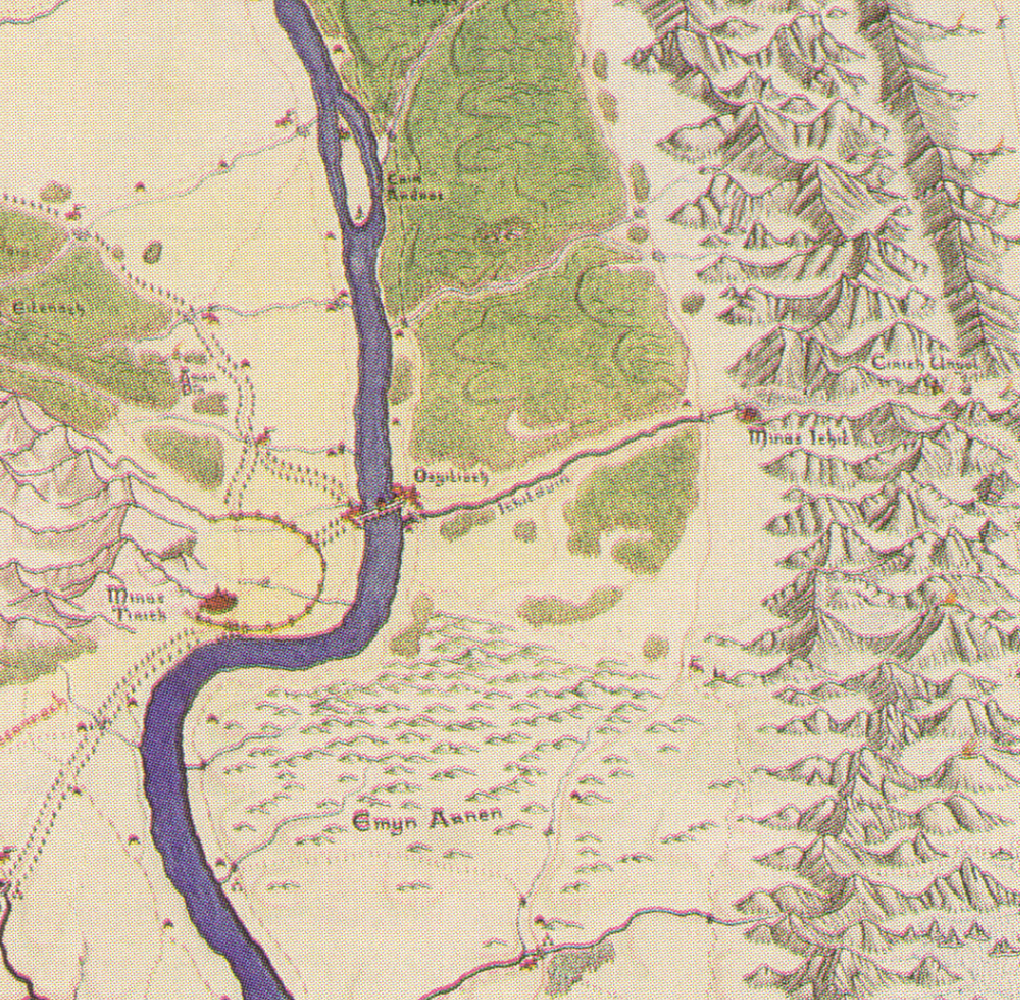 “…And the Enemy must pay dearly for the crossing of the River. That he cannot do, in force to assail the City, either north of Cair Andros because of the marshes, or southwards towards Lebennin because of the breadth of the River, that needs many boats. It is at Osgiliath that he will put his weight, as before when Boromir denied him the passage.” LotR 816