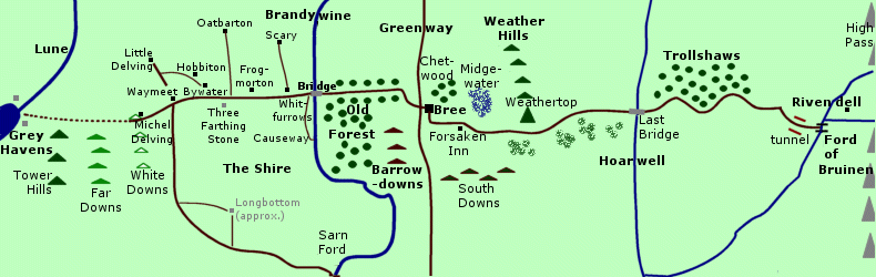 Here’s the Anduin, the major obstacle for Sauron’s forces to cross at a point in easy striking distance of Minas Tirith.