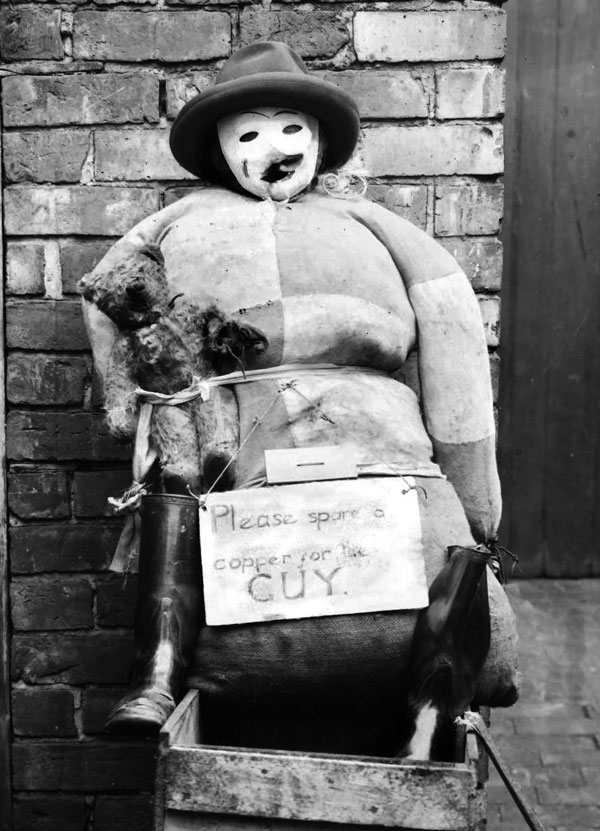 The coins collected were then used to buy sweets and fireworks, to be used during the evening when the guy was placed upon a bonefire—bonfire—and burnt.