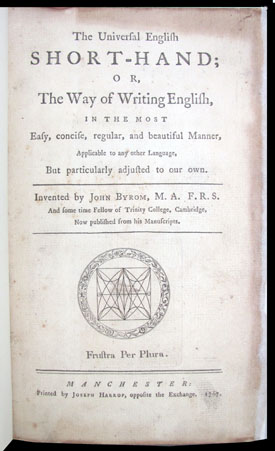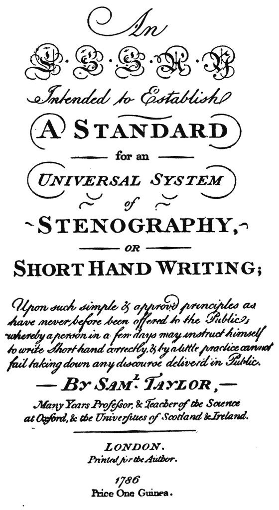 with a rival in that of Samuel Taylor’s 1786 An Essay Intended to Establish a Standard for a Universal System of Stenography, or Short-hand Writing, which appears to have overtaken and replaced Byrom’s method.