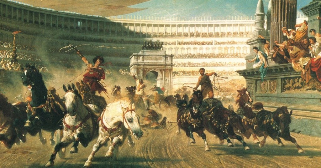 By late imperial times, however, the office had lost its power and had become ceremonial, which included, at the consul’s installation, a massive celebration, including the Greco-Roman world’s favorite sport, chariot-racing.