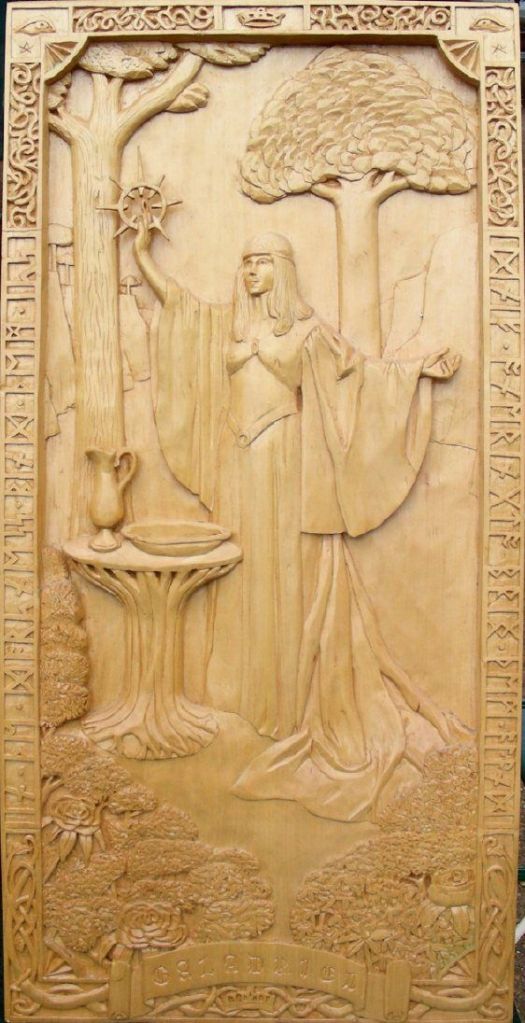 This posting came about because, as usual, I was looking for images to illustrate an earlier posting and came across the work of Tom Buggey, and this wood panel of Galadriel—does this form look familiar?