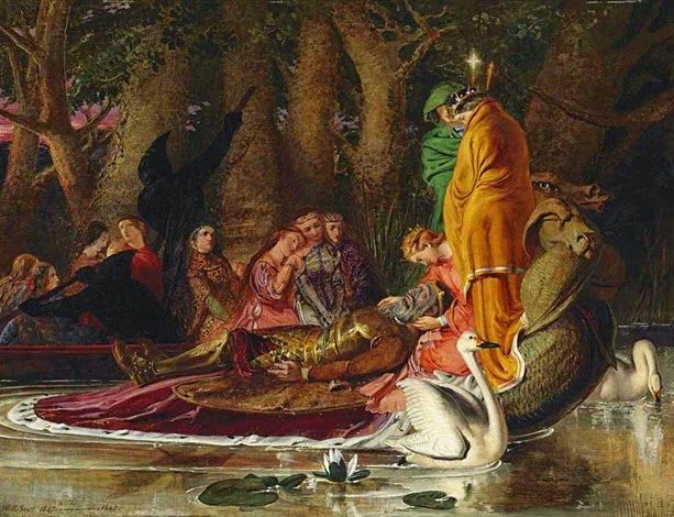 or perhaps a kind of rescue by a group of mysterious women, who take him off to “the Isle of Avalon”