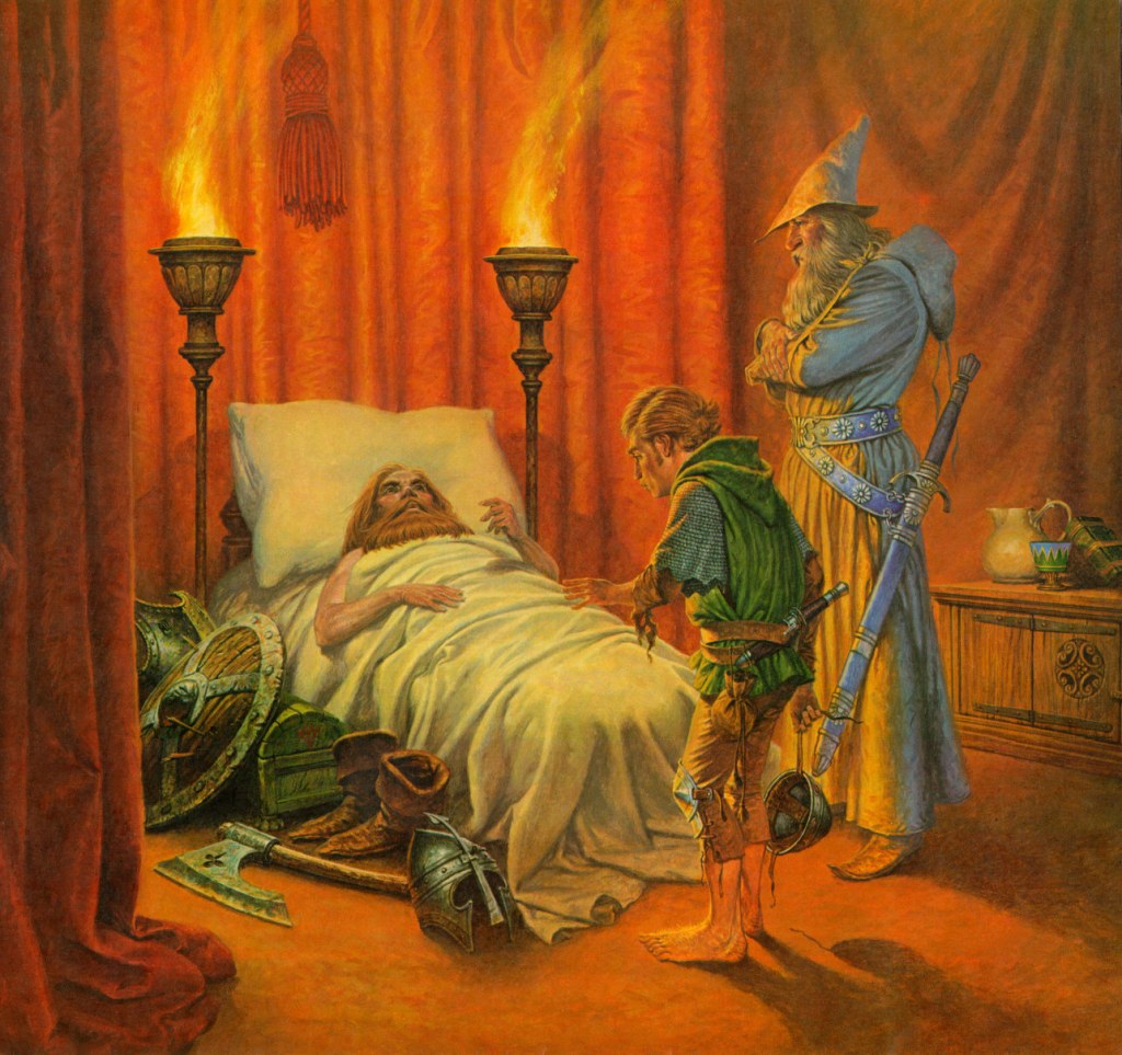 Thus, Aragorn suggests that he’s not only the possessor of an ancient sword which signifies his heritage, but he’s also an experienced soldier, who has continued has family’s role as protectors of the North. As the story proceeds, Aragorn continues to show proofs of his kingship, laying claim to a palantir and using it to turn the tables on Sauron (The Return of the King, Book Five, Chapter 2, “The Passing of the Grey Company”), traveling the Paths of the Dead to call upon the Oathbreakers finally to fulfil their oath (“The Passing of the Grey Company”), and in his ability to heal those near-death, as Gandalf says: