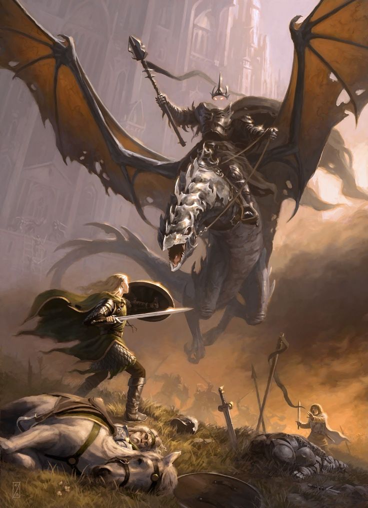 In my looking about for illustrations, I happened upon this very interesting view of the death of Theoden—