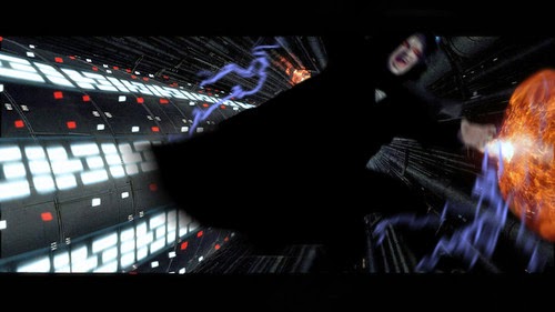 seeming either to ignore or not to know that his grandfather had died just after turning away from the Dark Side through his extermination of Emperor Palpatine (or not, as we find out in 9).