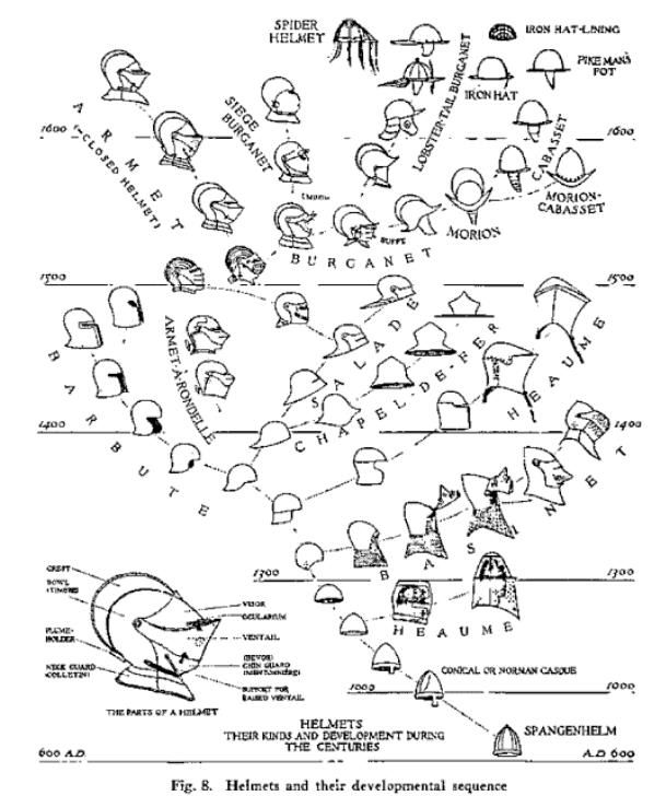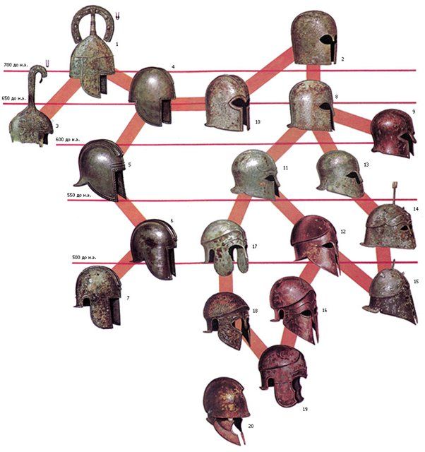 Without going into a lot of detail (like anything to do with armor, it’s a complex subject—just look at this table of the development of Greek helmets),