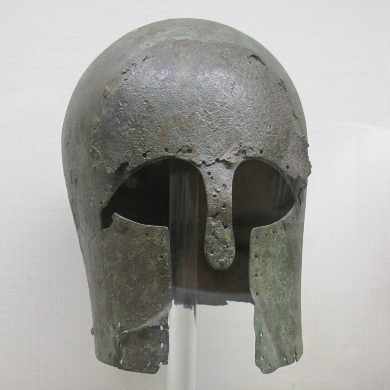 you can also see that helmets worn by the ancient Greeks were often constructed to protect the whole head—here’s a plain example–