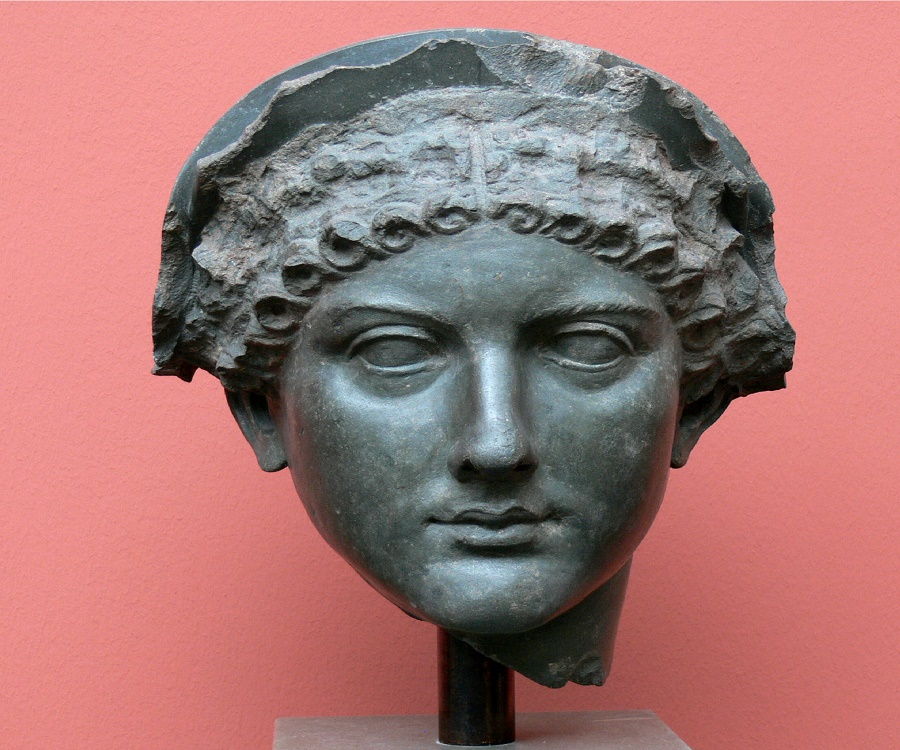 A difficulty with a helmet like this is easy to see: it not only constricts your vision and hearing, but it would be really hot and stuffy in a Greek summer. To gain some relief, it looks like it would be lifted and pushed back on the head when not in service, as we can see on numerous depictions of Athena, for example, like this, one of my favorite reliefs, which is sometimes called “The Mourning Athena” or “Athena Reading a Decree” (c460bc), but which I think may actually be Athena at a boundary stone, suggesting that the patron of Athens stands at the edge of its lands, ready to protect them.