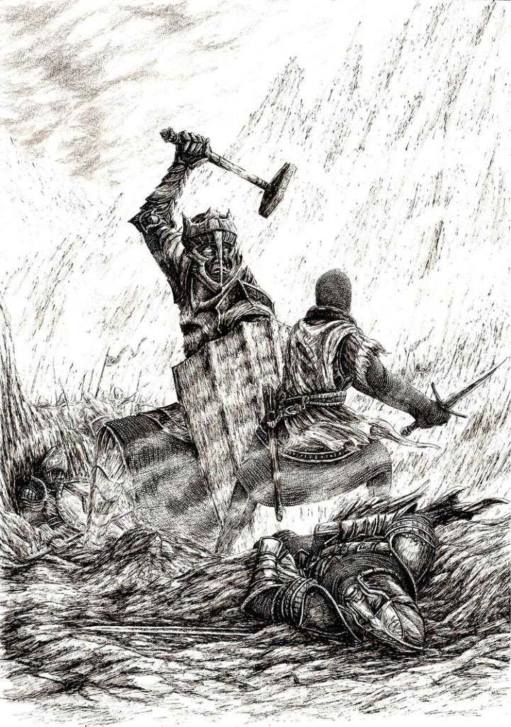 This new imperious attitude of Frodo’s—the voice, the very formal language—seem to come from nowhere, although I would suggest that they are the ghostly echo of Isildur’s rejection of his comrades’ urging that he throw the Ring into the fire, nearly 3000 years earlier. And, for all the tone, Frodo was only a Hobbit from the Shire, and, as Gandalf says of Gollum, “The Ring had given him power according to his stature” (The Fellowship of the Ring, Book One, Chapter 2, “The Shadow of the Past”): he could never have been a great power in Middle-earth and, would probably, like Gollum, have been ruined in time by the Ring, which then would have slipped from him, as it did Gollum. As Elrond says to Boromir: