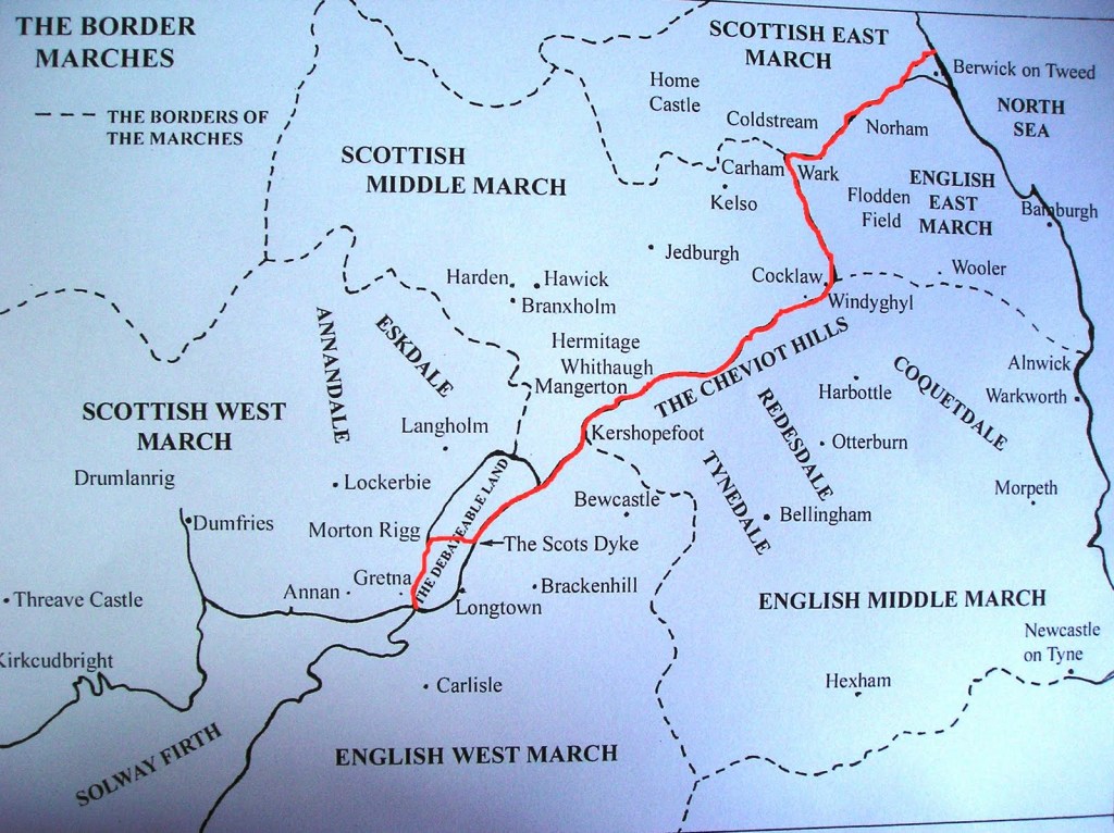 and the troubled border between Scotland and England was, on both sides, divided into East, Middle, and West Marches,