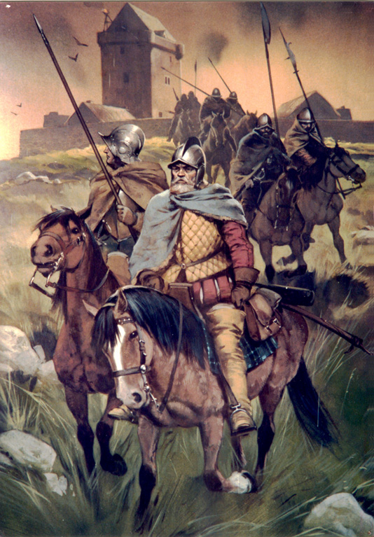 (another McBride—this is the “hot trod”, where the Warden summoned all those to help him in pursuit of raiders by raising a burning turf on a spear)