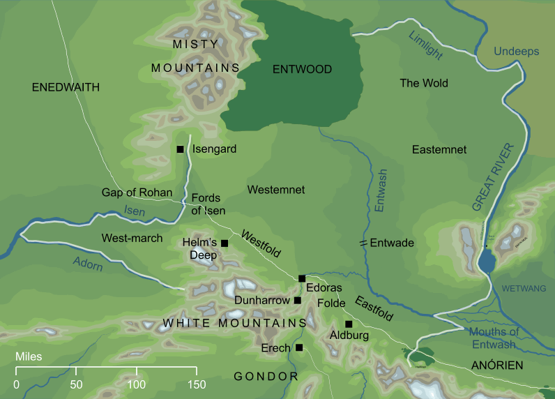 “…in reward for his aid, gave Calendardhon between Anduin and Isen to Eorl and his people; and they sent north for their wives and children and their goods and settled in that land. They named it anew the Mark of the Riders [Riddermark}…but in Gondor their land was called Rohan, and its people the Rohirrim…There the Rohirrim lived afterwards as free men under their own kings and laws, but in perpetual alliance with Gondor.” (The Lord of the Rings, Appendix A, II, “The House of Eorl”)
