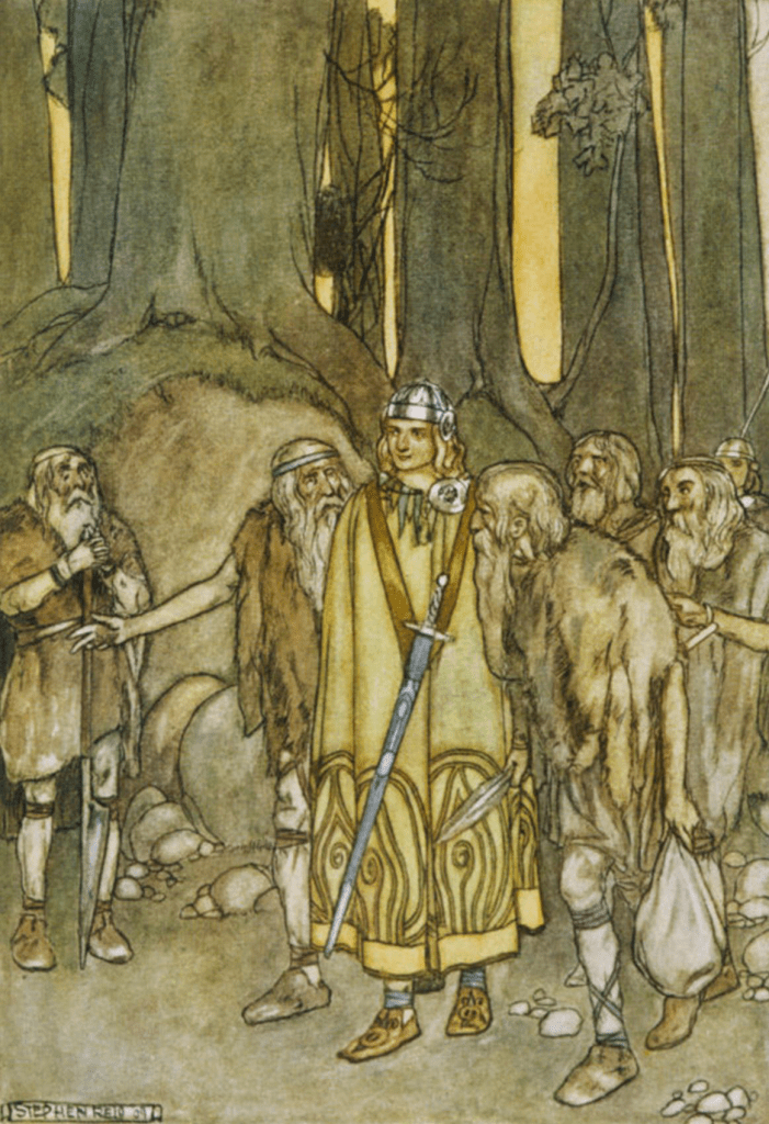 Tolkien’s “The Homecoming…” is a short verse play (the text suggests even a radio play) which is a dialogue between two characters, Tidwald (Tida) and Torhthelm (Tota), Anglo-Saxon servants of Byrhtnoth, who have come to the battlefield to collect his body. The verse is mostly of a loose alliterative kind, approximating Old English verse and, upon occasion, even using real Old English verse, as well as a number of mentions of its subjects. The themes of the play include a traditional one—searching a battlefield for a lost loved one—as well as a potential criticism of the ealdorman for agreeing to the Viking proposal and its consequences: