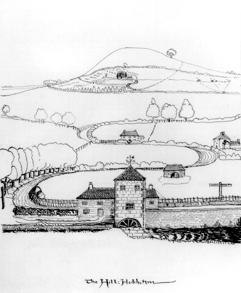 (Although you can see, by the way, in this earlier sketch, that Tolkien had not originally decided upon the window-shape consistency of the later illustration, or on the true meaning of “Shirelike”.)
