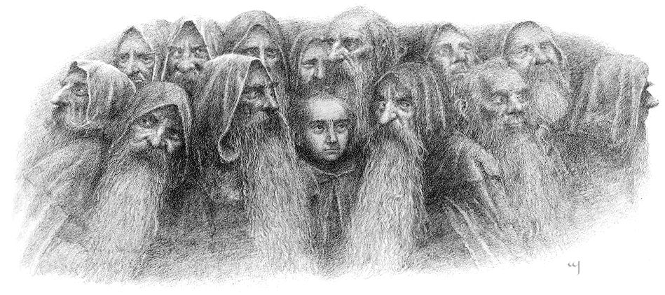 When the dwarves overwhelm Bilbo’s house, in the first chapter of The Hobbit (“An Unexpected Party”—which is, in fact, a pun—JRRT admits, in a letter to Deborah Webster 25 October, 1958, Letters, to having a simple, hobbit sense of humor—not only is a party a festivity—although this one, for Bilbo was far from it—but, in older English, “party” can also mean “a person”—so that “unexpected party/person is presumably Gandalf, as it’s in the singular),