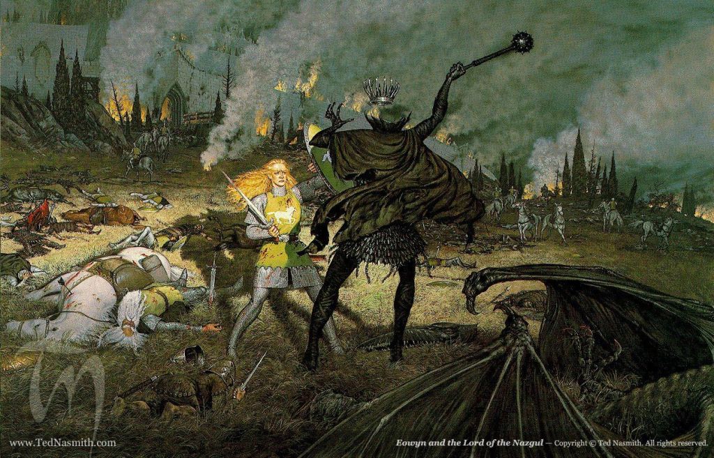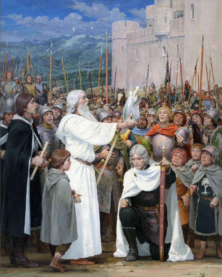 Some years ago, for instance, a Russian artist, Sergey Yuhimov, had illustrated The Lord of the Rings in the style of Russian religious art, which was an intriguing idea. Here’s the death of Boromir, as an example–