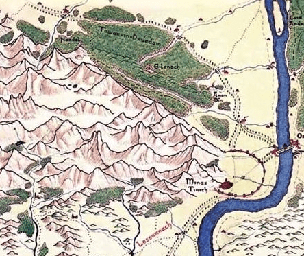 Using our map, we can see that the old road traveled through the Gap of Rohan,