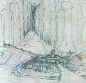 “Many tall men heavily cloaked stood beside him, and behind them in the mist loomed a wall of stone. Partly ruinous it seemed, but already before the night was passed the sound of hurried labour could be heard.”