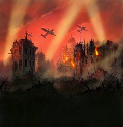 Oxford escaped bombing (see:    https://www.exploringgb.co.uk/blog/whywasntoxfordbombedworldwar2  ), but Tolkien could see vivid images of London and other British cities suffering terrible damage from Nazi aerial attacks from 1940 on—