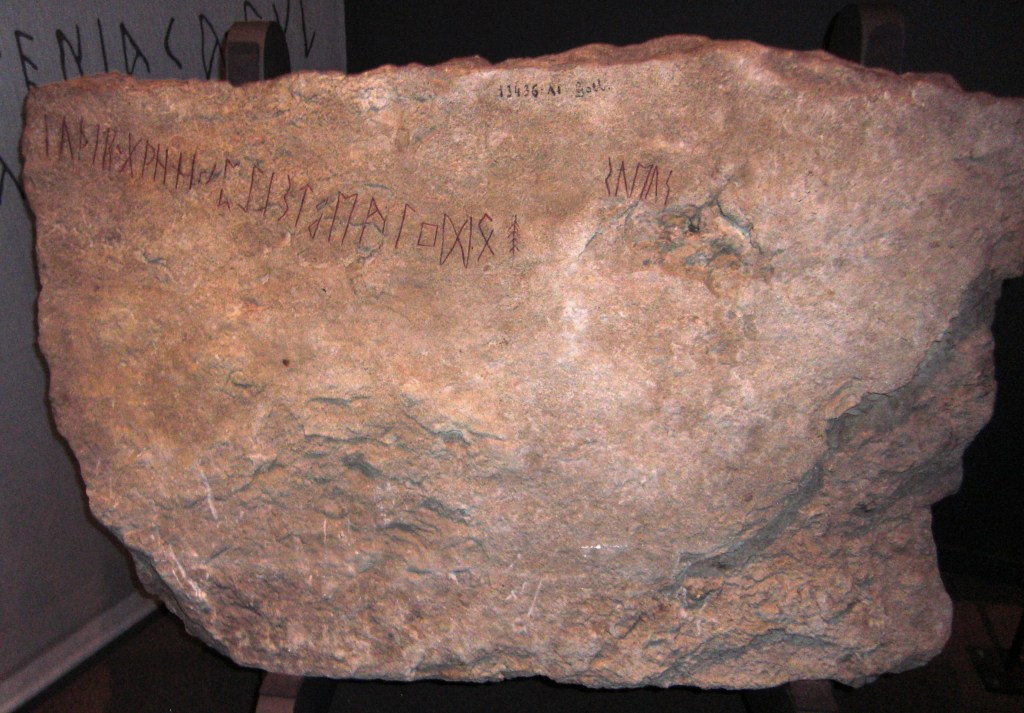 (This is the Kylver Stone from Gotland, Sweden, c.400AD, which lists the Elder Futhark letters. For more, see: https://en.wikipedia.org/wiki/Kylver_Stone and you can see from the translation of the runes where “Futhark” came from. )